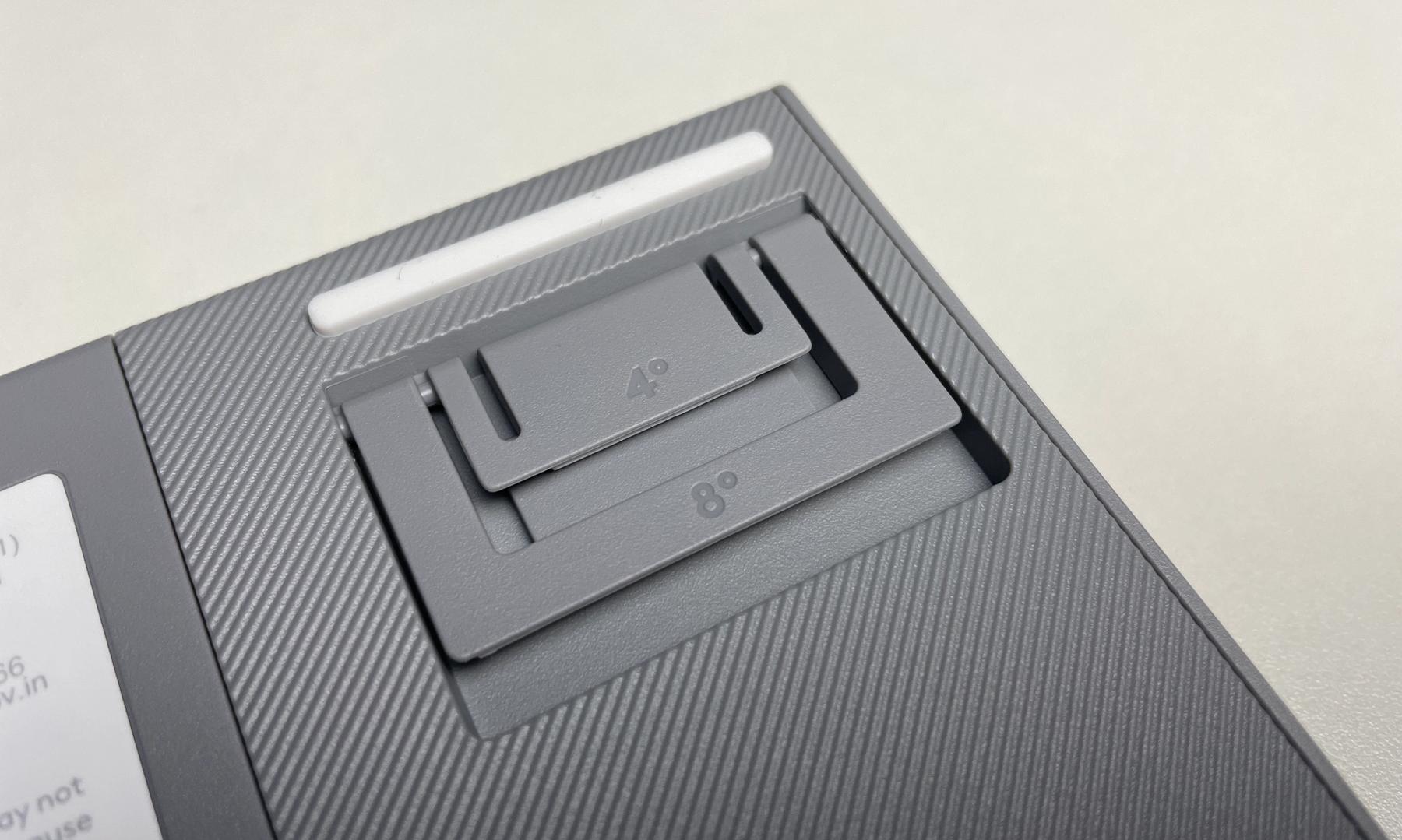 Fötterna som kan fällas ut i 4 och 8 grader känns ganska "standard" för Logitechs tangentbord, medan den gråa kanten ger ett lite billigare intryck.