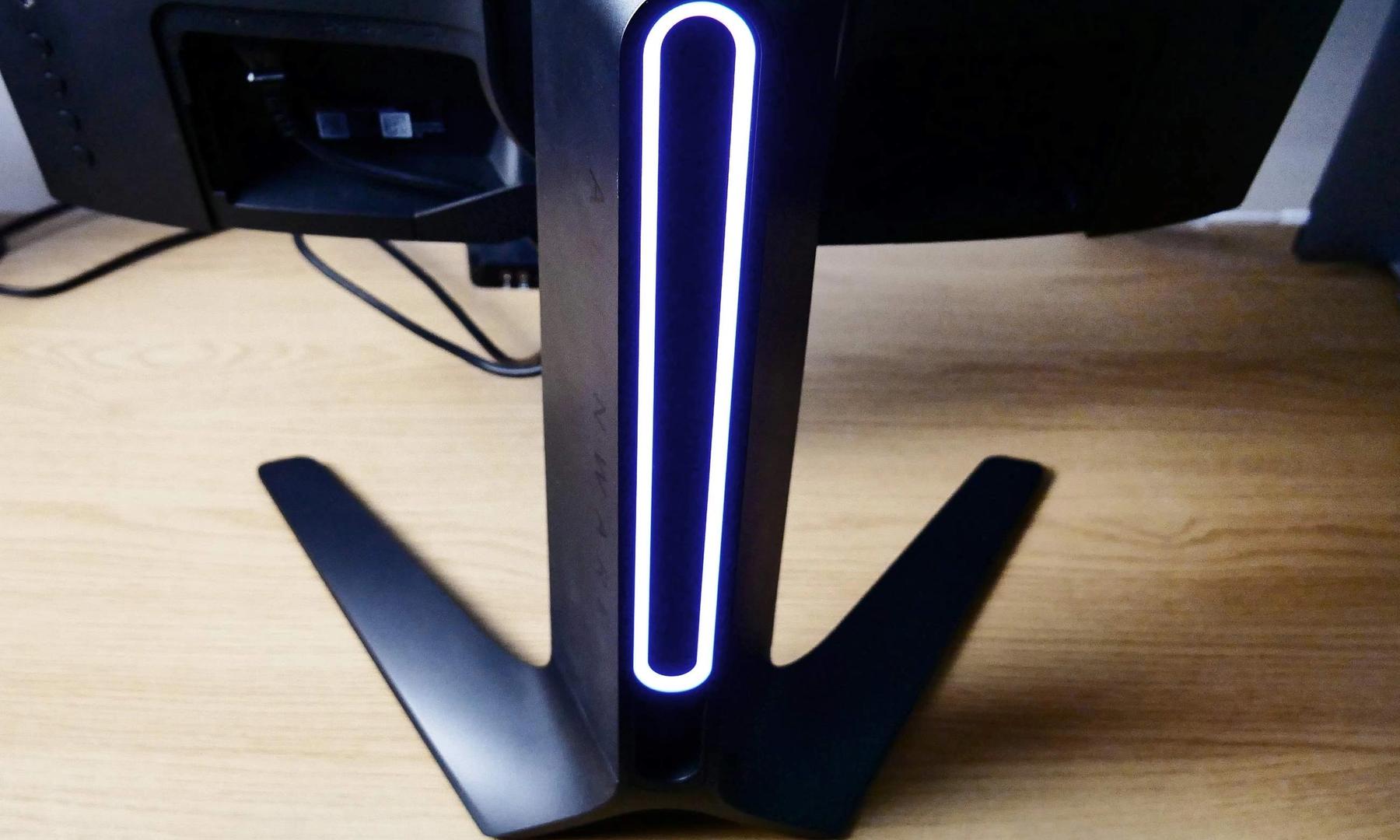 Det positiva fortsätter när jag kopplar in skärmen, den lyser upp som ett rymdskepp ungefär. Tyvärr ganska svårt att fånga på bild dock. För den som gillar RGB-belysning är det här riktigt häftigt. Likt laptops från Alienware så har även skärmen ett coolt sken som ger en neon-liknande känsla.