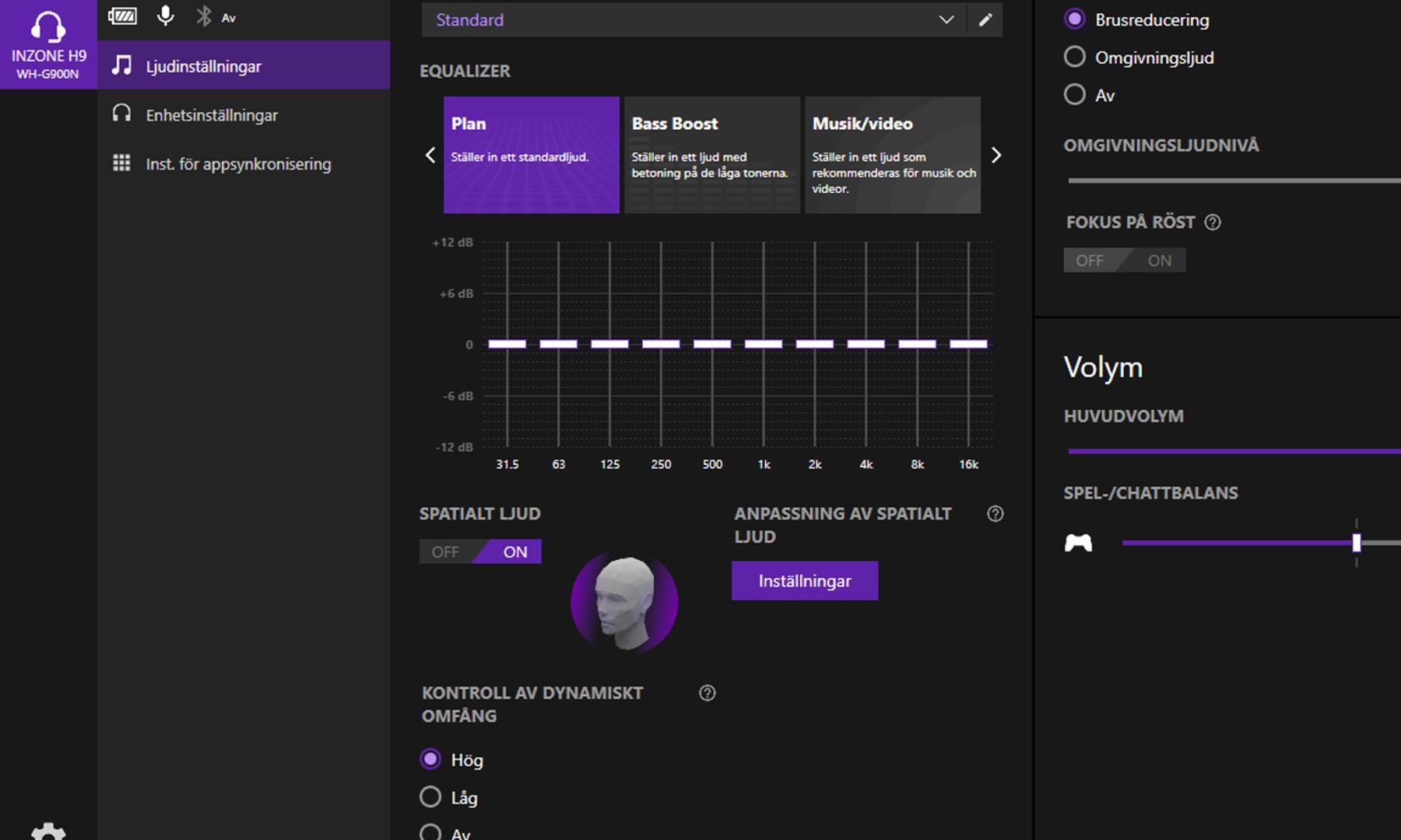 INZONE Hub är alltså programmet för att ställa in diverse inställningar för hörlurarna. Det är relativt enkelt att förstå sig på utan någon större investerad tid i att navigera runt.