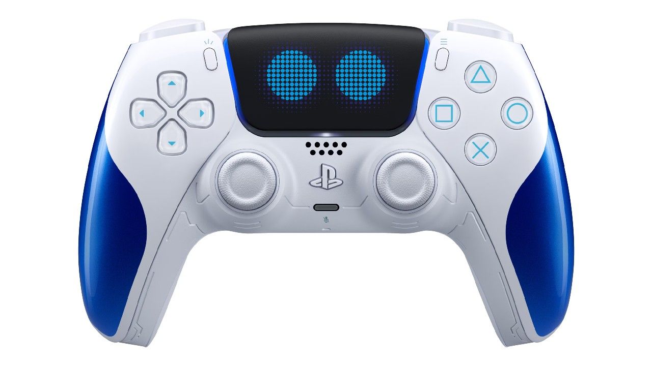 Handkontrollen är i grunden identisk med den klassiska DualSense-modellen, men har Astros ögon på styrplattan och en blåmetallic färg på greppytorna. Dessutom har den unika, mer robotliknande utskärningar i plasten, något som den vanliga DualSense-kontrollen saknar.