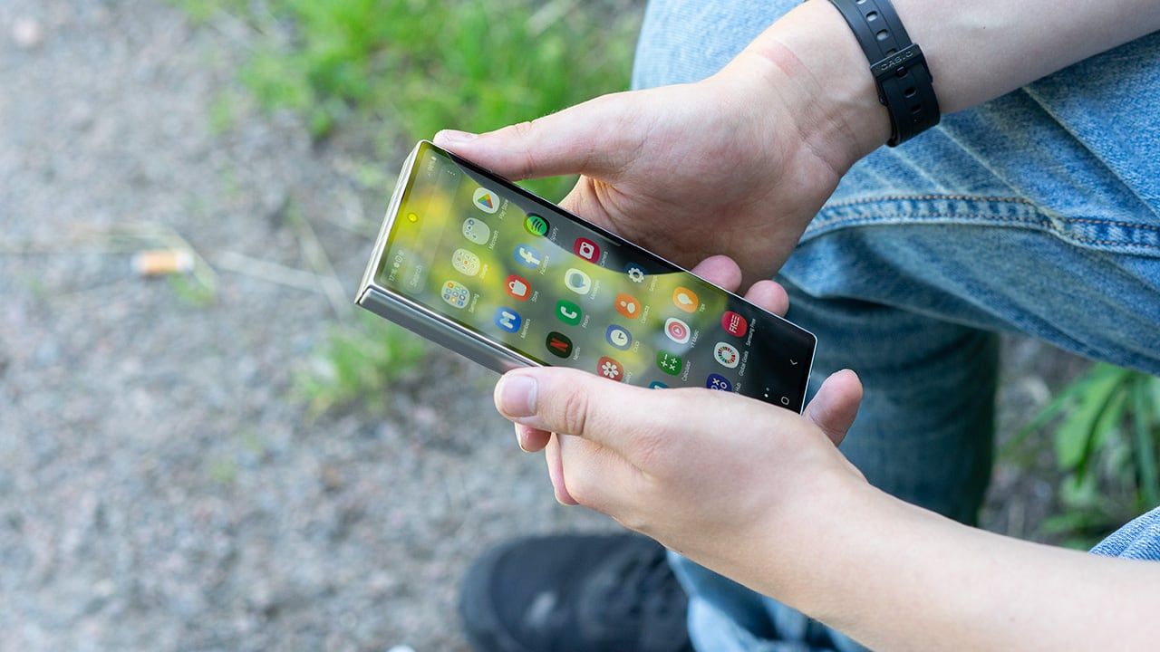 Det här är min första vikbara mobiltelefon som jag håller i handen. Kanske är det därför som jag känner en skräckblandad förtjusning när jag viker upp den inre skärmen. Trots den gedigna känslan och tyngden i mobiltelefonen är det inte utan nervositet som jag provar gångjärnet några gånger. Viker upp, stänger, viker upp, stänger.