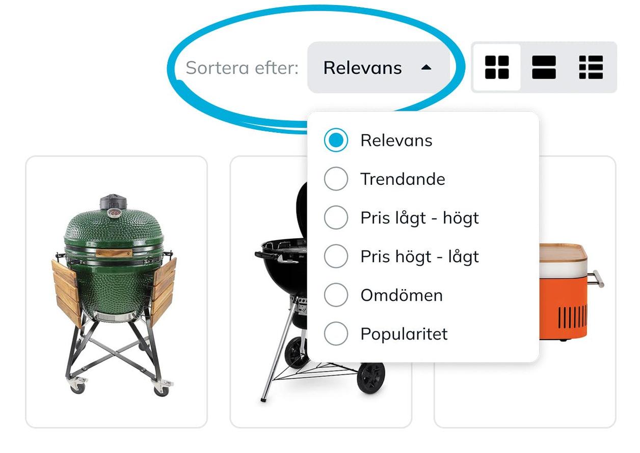 När du gjort en sökning eller besöker en kategorisida kan du välja att sortera de visade produkterna på olika sätt. Här beskriver vi vilka alternativ som finns och förklarar hur de fungerar.