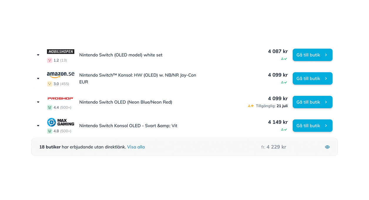 Vårt mål är att vara en komplett och objektiv pris- och produktjämförelsetjänst. Vi visar alla butiker och priser som vi känner till för varje produkt. Vi visar både butiker som betalar oss för den trafik vi skickar till dem (profilerade butiker) och butiker som inte betalar oss. Vi utesluter inga erbjudanden.