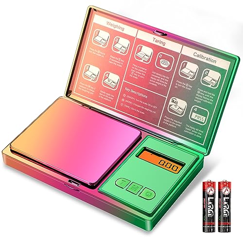 UNIWEIGH Digital fickvåg, 300 g/0,01 g, mini regnbågsvåg för mat, uns och gram, iriserande liten skala för smycken gram, Tara för smycken, medicin, örter, mynt