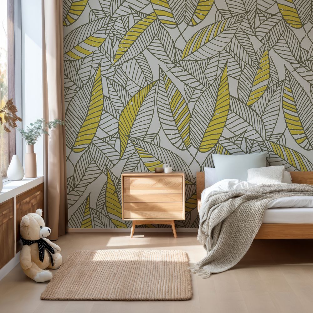 Fototapet -Seamless Floral Leaf Pattern - Sovrum - Scandiwall - Löv