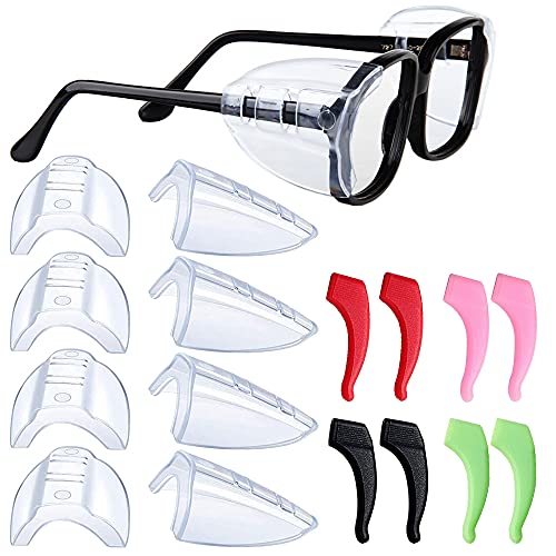 AFUNTA 4 par säkerhetsglasögon sidoskydd, flexibla slip-on sidoskydd för receptglasögon med 4 par silikon antislip-öronkrokar, för små till medelstora glasögon