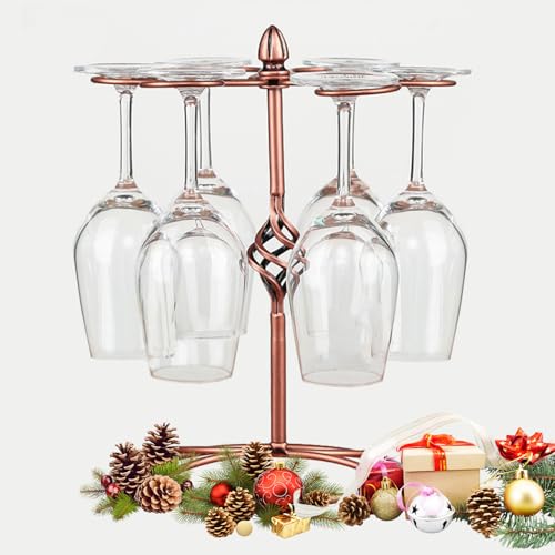 Vinglasställ, bänkskiva, vinglashållare, elegant fristående bordsskiva, stamvara, förvaringsställ/vinglasstativ, hållare med 6 krokar, köksglasögon, tillbehör för förvaring i hemmet, bar, brons