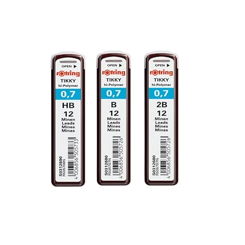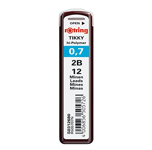 Uppsättning av rOtring Tikky hög-polymer blypåfyllningar, 0,7 mm, B (12 ledningar), HB (12 ledningar), 2B (12 ledningar)