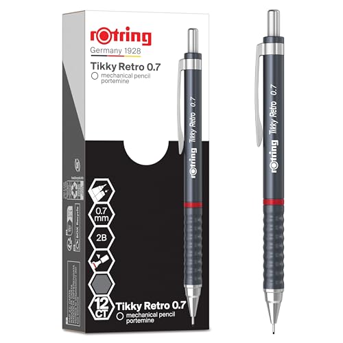 Rotring Tikky Retro Mechanical Pencils | 2B 0.7 mm | Grey Barrels | with Comfort Rippled Grip | 12 Count