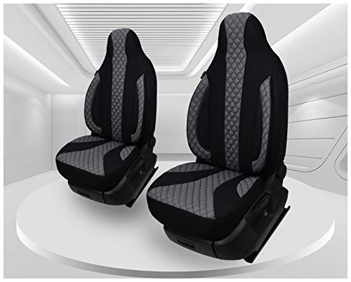 BREMER SITZBEZÜGE Mått bilskyddsöverdrag kompatibla med Isuzu D-Max 1 förare och passagerarset från 2007–2012/bilsätesöverdrag skyddsöverdrag set bilsätesöverdrag 2-pack i svart/vit söm