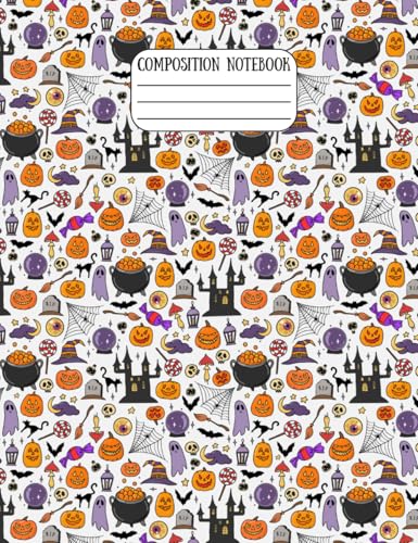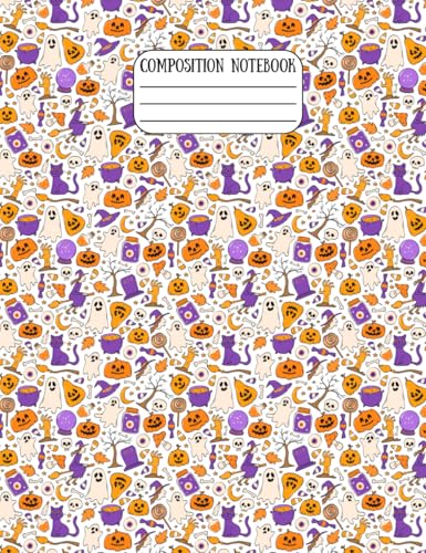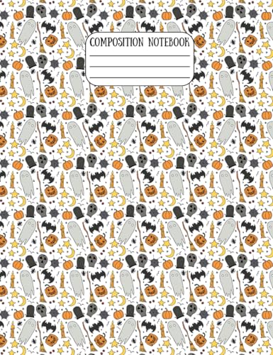 Pumpkin Ghosts Spiders Cute Halloween Composition Notebook, School Supplies – College Ruled, 7-1/2 × 9-3/4", 60 Pages Lined + 10 Graph Paper, Matte ... School, Journaling, or October Writing Fun