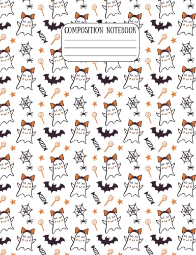 Pumpkin Ghosts Bats Cute Halloween Composition Notebook, School Supplies – College Ruled, 7-1/2 × 9-3/4", 60 Pages Lined + 10 Graph Paper, Matte ... School, Journaling, or October Writing Fun