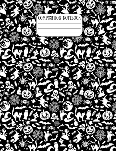 Halloween Themed Spooky & Cute Composition Notebook – College Ruled, 7-1/2 × 9-3/4", 60 Pages Lined + 10 Graph Paper, Matte Cover: Black & White ... Kids, Students, Adults and October Creativity