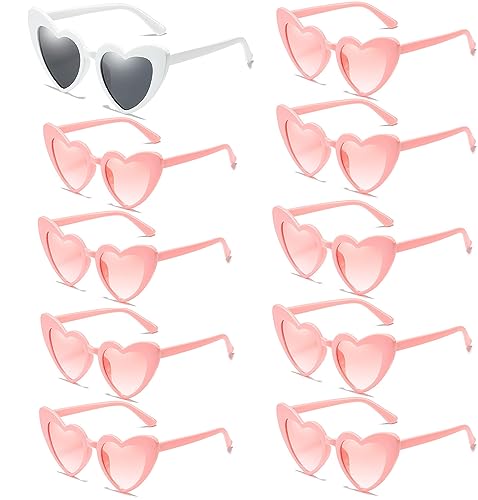 kiimiipa 10-pack hjärta solglasögon, solglasögon kvinnor, vintage kärlek hjärta solglasögon för kvinnor män barn, UV 400 skyddande solglasögon bröllop solglasögon fest solglasögon utomhus, 1 vit + 9