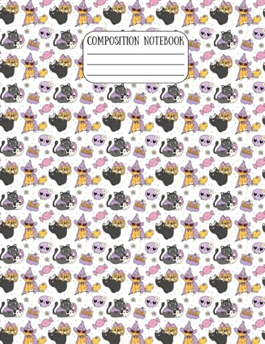 Cute playful Cats & Witches Halloween Composition Notebook – College Ruled, 7-1/2 × 9-3/4", 60 Pages Lined + 10 Graph Paper, Matte Cover: Cats, ... for Students, Teachers, and Cat Lovers