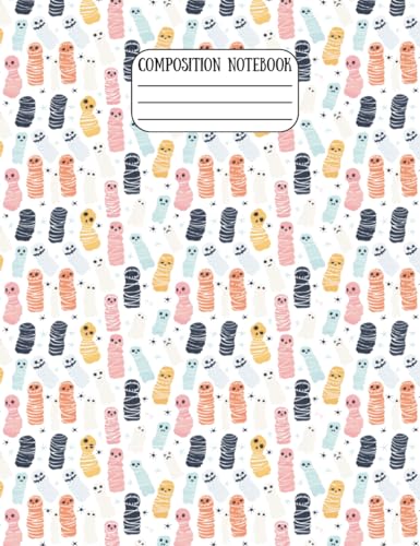Cute Colorful Mummies Halloween Composition Notebook – College Ruled, 7-1/2 × 9-3/4", 60 Pages Lined + 10 Graph Paper, Matte Cover: Fun Halloween ... Creativity School Notes Seasonal Gifts