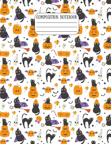 Halloween Cats & Pumpkins Themed Composition Notebook – College Ruled, 7-1/2 × 9-3/4", 60 Pages Lined + 10 Graph Paper, Matte Cover: Cats, Witches & ... Kids, Teens, Adults Teachers, and Cat Lovers