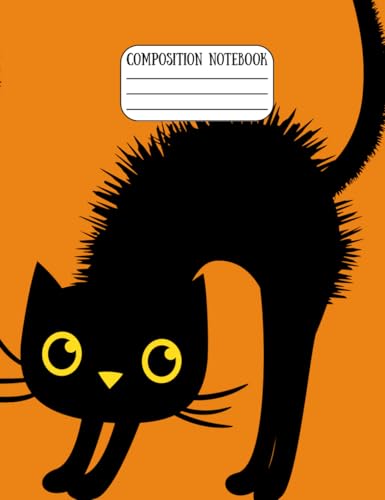 Halloween Scared Cute Black Cat Composition Notebook – College Ruled, 7-1/2 × 9-3/4", 60 Pages Lined + 10 Graph Paper, Matte Cover: Black & Orange ... Kids, Students, Adults and October Creativity