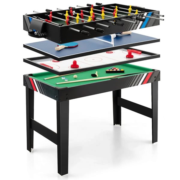 4-i-1 spelbord med fotboll, biljard, hockey och pingis