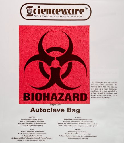 Bel-Art F13160-0009 polypropylen 1-3 gallon klar biohazard bortfallspåsar med varningsetikett/steriliseringsindikator, 12 W x 24 tum, 1,5 mil tjock (paket med 100)