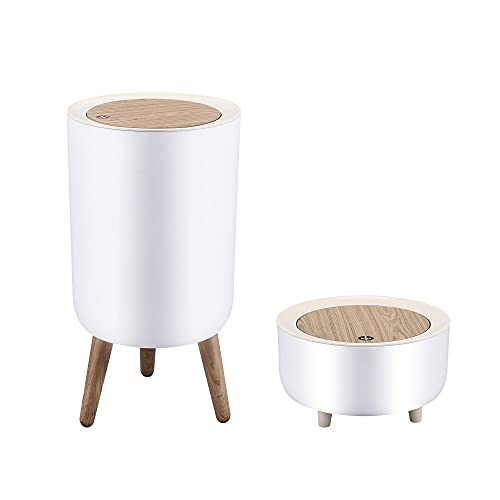 Papperskorg 1,8 gallon (0,5 gallon (2 stycken) minisoptunna med trycklock, nordisk modern avfallskorg, kontor, utomhus, hundsäker soptunna (vit)