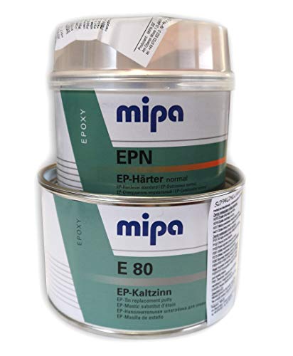 Mipa Set E 80 kall tenn 1 kg hårdare spackel 0,5 kg 2K epoxifyllningspatel