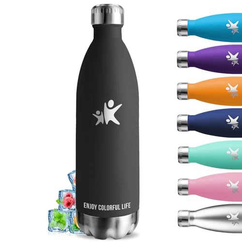 1 liter termisk vattenflaska, BPA-fri, vattenflaska i rostfritt stål, läckagefri, termisk flaska, 18/8 rostfritt stål, metall, för löpning, fitness, vandring, camping