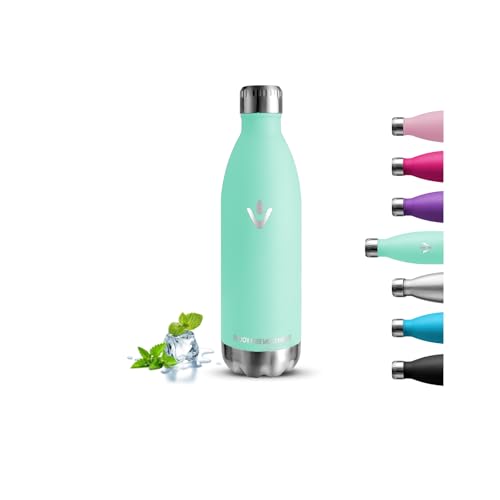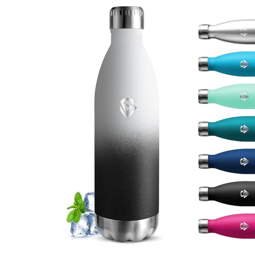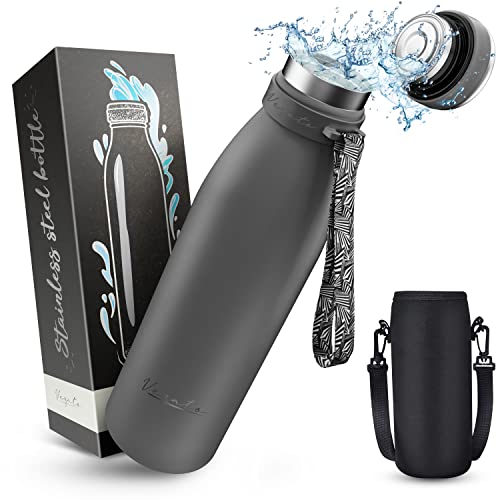 Vezato Dricksflaska rostfritt stål - BPA-fri isolerad flaska 1 liter - Läcksäker vattenflaska med dubbel isolering - Thermosflaska tål diskmaskin - Lämplig för kolsyra - Hållbar