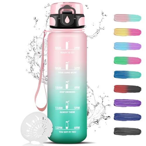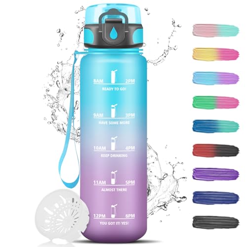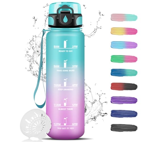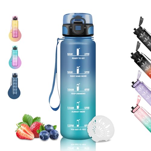 1 liter vattenflaska, läckagefri, motiverande vattenflaska med tidsskala, vattenflaska med filter, lätt att rengöra, flaska för sport, fitness, vandring, cykling, yoga