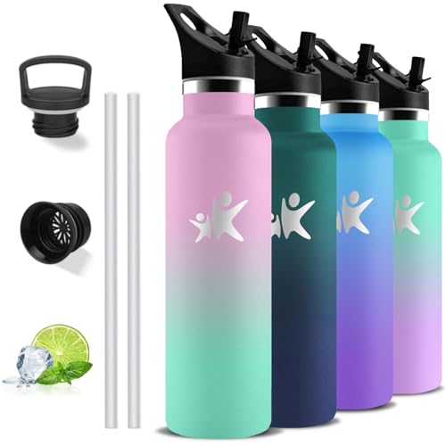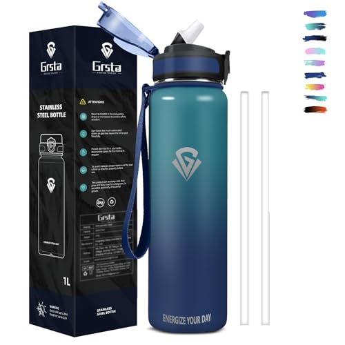 Grsta Termisk flaska, 1 liter vattenflaska, vattenflaska med sugrör, BPA-fri, vakuum med dubbla väggar, gymflaska utan förlust, metallflaska för skolan, sport, camping, cykling