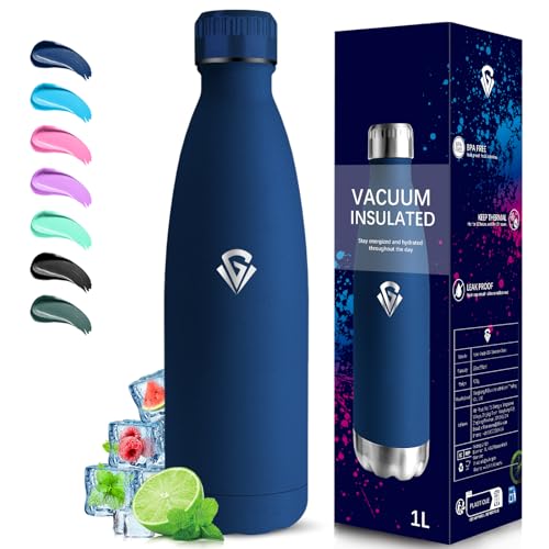 Grsta Termisk flaska, 1 liter vattenflaska, BPA-fri, vattenflaska i rostfritt stål, läckagefri, sportflaska, håller dig varm i 12 timmar/kall 24 timmar, termosflaska för camping, vandring