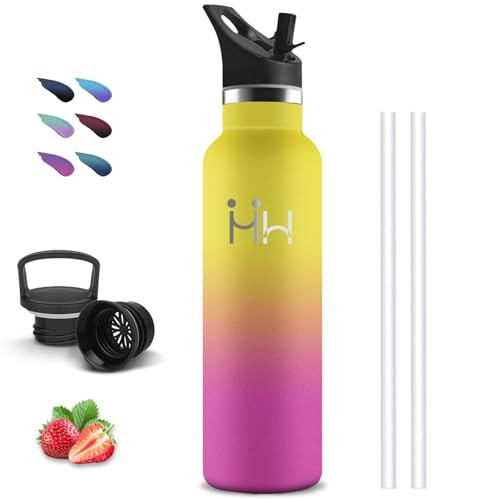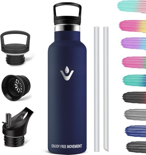 VINSUN 1 liter termisk vattenflaska - Vattenflaska i rostfritt stål med sugrör - Läckagefri, BPA-fri, återanvändbar - Termisk flaska för sport, skola och gym