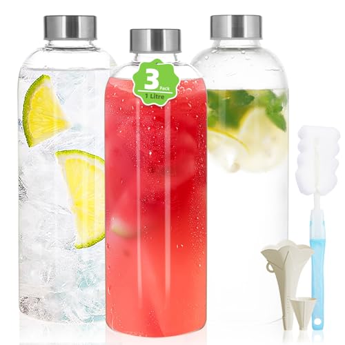 Tryslyn Glasflaska, 1 liter, drickflaska glas, glasflaskor, vattenflaska glasflaska, glasvattenflaska, flaska, glasvattenflaska, flaska, glasflaskor för varma drycker, dricksflaskor med kolsyra
