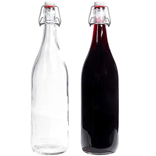 mikken 2 x brun glasflaska 1 liter med strykförslutning av porslin, inklusive etiketter