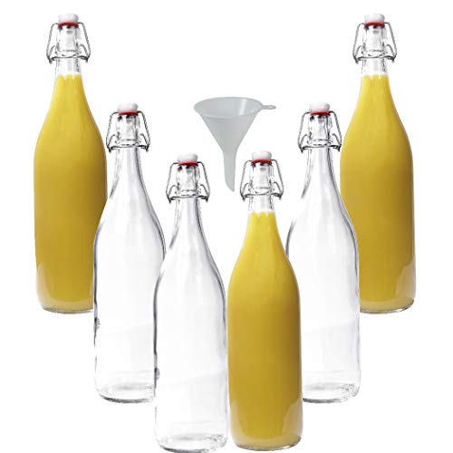 mikken 6 x glasflaska 1 liter med strykförslutning av porslin inkl. tratt, transparent