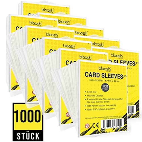 Blaash® kortärmar | 1 000 premium - fodral | transparenta kortfodral för alla vanliga spel- och samlarkort som YuGiOh, MTG, Match Attax| Standard Penny Soft Sleeves | 67 x 94 mm