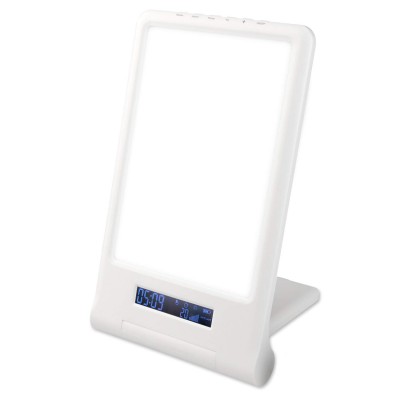 LED ljusterapi-armatur med timer/alarm - 18W, vit/blå, 10.000 LUX, inbyggt batteri