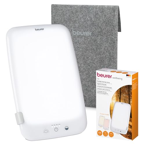 Beurer TL 35 dagslju, simulering av dagsljus, med 3 färgtemperaturer för en reglerad dag-natt-rytm, 10 000 lux, medicinsk produkt, avtagbart stativ, med dimmer, vit [Energiklass A]