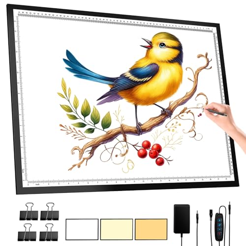 DONPODER A2 ljusdyna 66 x 48 cm, 10 000 + LUX hög ljusstyrka, 3 färger och 10 nivåer/steglös dimning, ljusbräda extra stor med UL-adapter för diamantmålning, ritning, spårning, skissning aluminiumram
