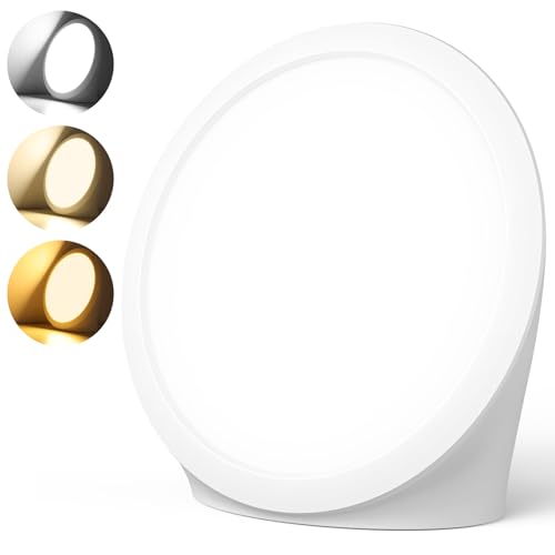 AUINSKY SAD Lamp, sorglig belysningsterapilampa, 10 000 Lux dagslju med 6 tidsinställningar och justerbar ljusstyrka och 3 färgtemperatur, UV-fri nattlampa med touch-kontroll, minnesfunktion