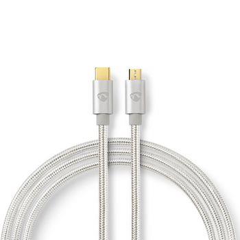 Nedis USB-kabel | USB 2.0 | USB-C- Hane | USB Micro-B Hane | 10 W | 480 Mbps | Guldplaterad | 2.00 m | Rund | Flätad / Nylon | Aluminium | Kartong med täckt fönster