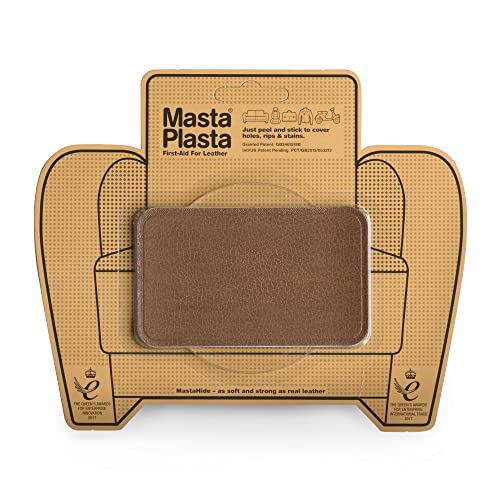MastaPlasta Premium läderreparationslapp – brun 10 cm x 6 cm (4 tum x 2,4 tum). Omedelbar klädsel kvalitet rep- och rivreparation för soffor, bilinredning, väskor, vinyl och mer