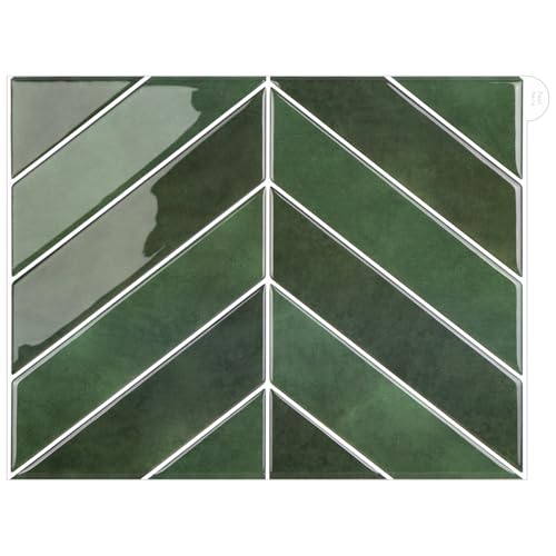 Alwayspon 10 ark 11,43 tum x 9 tum retro grön fiskbensmönstrad 3D vinyl väggkakelklistermärke överföringar, skala av och klistra fast, vattentät, stänkskydd, klistra på kakeldekaler för kök badrum