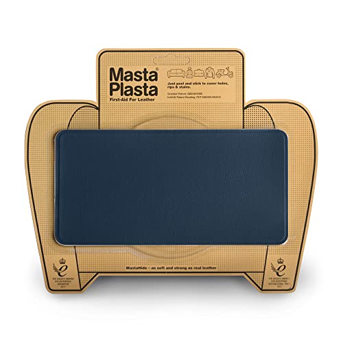 MastaPlasta Premium läderreparationslapp – marinblå 10 cm x 6 cm (4 tum x 2,4 tum). Omedelbar klädsel kvalitet rep- och rivreparation för soffor, bilinredning, väskor, vinyl och mer