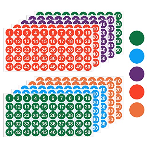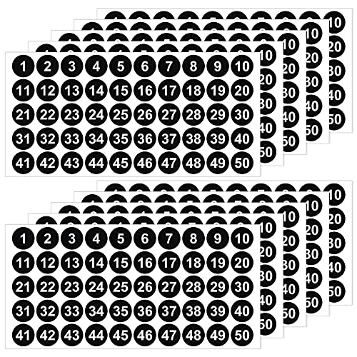 500 st 1–50 nummerklistermärken – 10 ark vinyl, vattentäta, självhäftande numrerade klistermärken för lagersortering, organisering, förvaringslådor, kontors- och skolmaterial (1 tum)