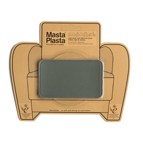 MastaPlasta Premium läderreparationslapp – grå 10 cm x 6 cm (4 tum x 2,4 tum). Omedelbar klädsel kvalitet rep- och rivreparation för soffor, bilinredning, väskor, vinyl och mer