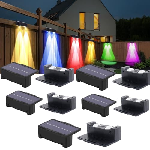 JBdusn 10 Pieces Solar Wall Light Outdoor, 12 Modes RGB Adjustable Solar Lights Garden, IP65 Waterproof Solar Fence Lighting LED Garden Lights for Garden Decoration, Outdoor, Wall, Stairs