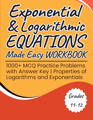 Exponential & Logarithmic Equations Made Easy Workbook 1000+ MCQ Practice Problems with Answer Key Grades 10-12: Properties of Logarithms and Exponentials