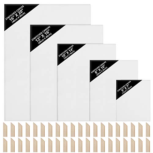 Kurtzy 10-Pack Blank Canvas (5 Storlekar) - 13 x 18 cm, 20 x 25 cm, 25 x 36 cm, 30 x 40 cm, 40 x 50 cm - Sträckt Duk med Träkilar