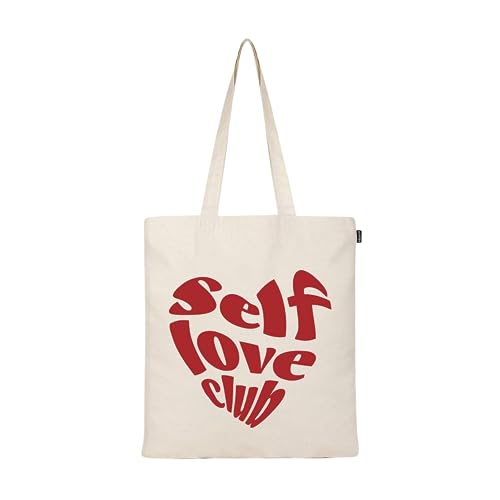 Eco Right Aesthetic Canvas Tygväska för kvinnor, söt, trendig och återanvändbar, bomullsväskor för skola, shopping, gym, bibliotek och strand, perfekt för livsmedel, Självkärlek-(pack of 10), Taglia